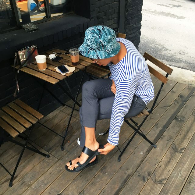 슬렉스나 쇼츠, 데님까지 어떤 팬츠와도 매치가 잘 되구요 무엇보다도 통가죽 본연의 묵직함과 견고함이 가장 큰 매력인 것 같습니다.