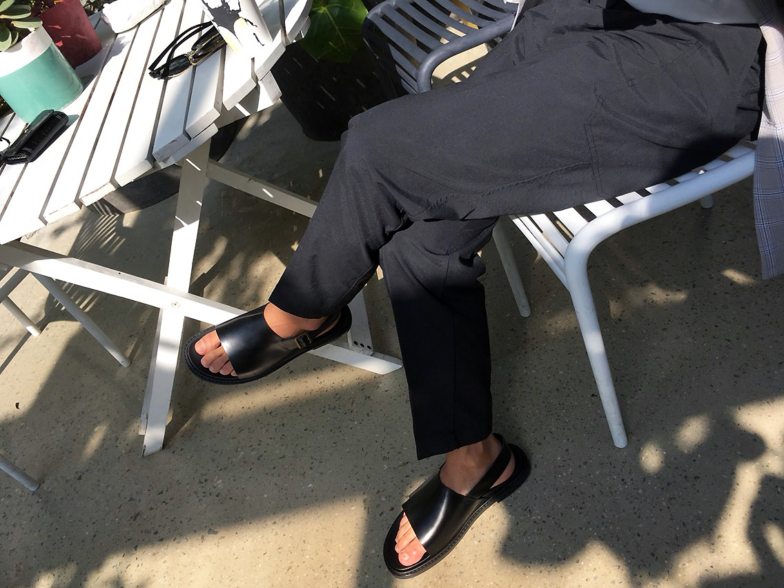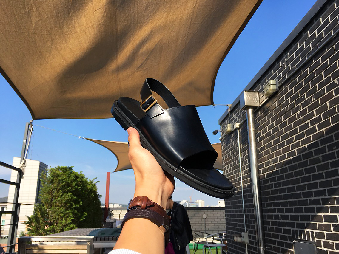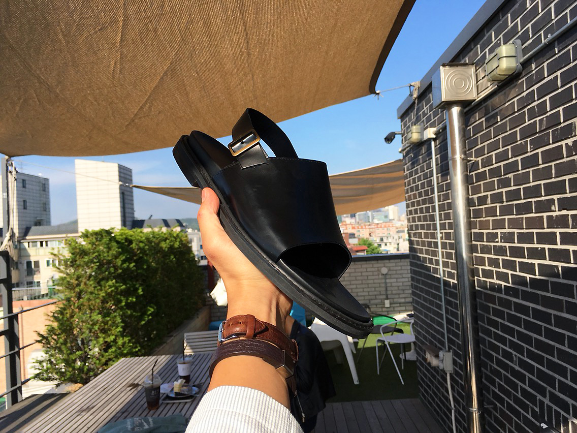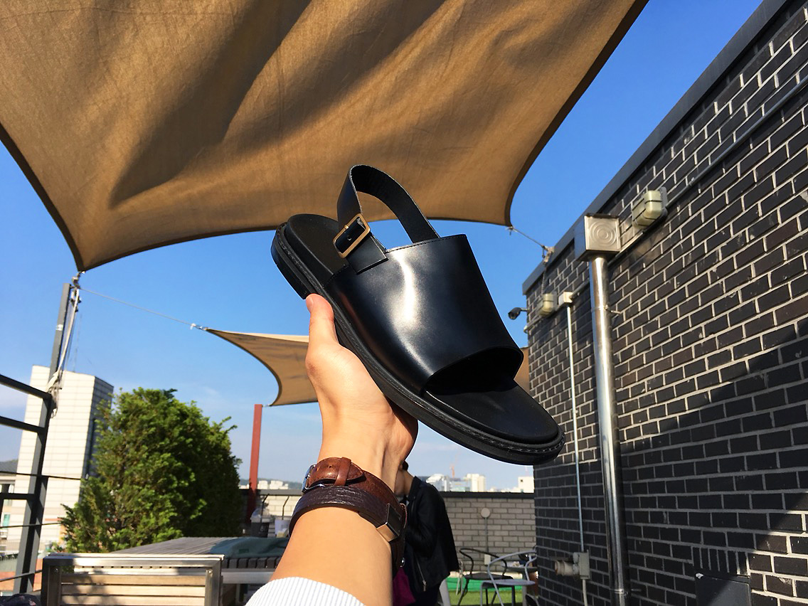 리얼 레더(통가죽)의 고급스러움과 블랙 컬러의 심플함으로로 남자의 마음을 설레게 할 홀레더 버클 샌들입니다.