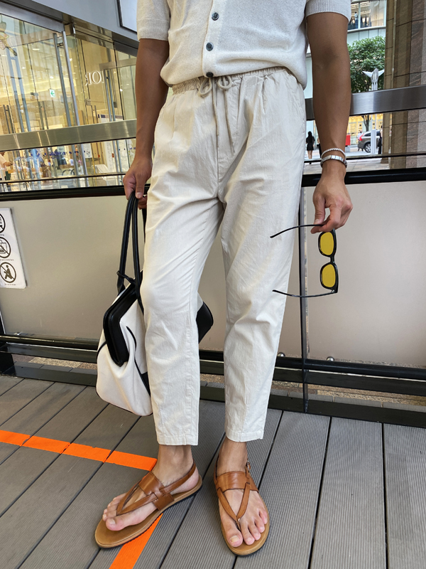 시원한 쿨링감과 편안한 착용감으로 데일리 아이템으로 좋은 치노 크롭 밴딩 팬츠입니다.