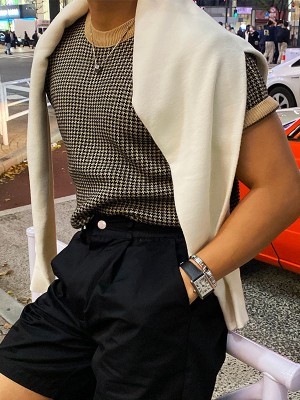 하운드투스 패턴의 디자인만으로도 유니크하며 머슬핏 라인까지 더해지며 니트 하나만으로도 룩에 확실한 포인트가 되어드립니다.